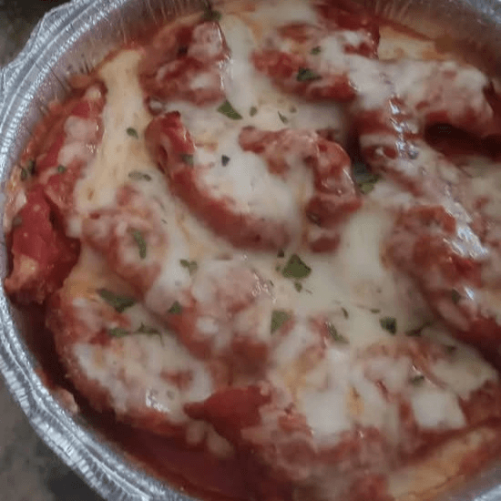 Served with a choice of side salad or pasta. Pasta choices: penne, rigatoni, capellini, or spaghetti